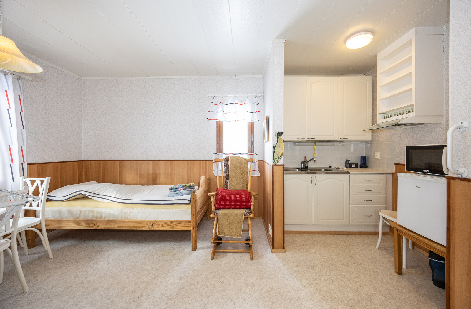Talossa alakerrassa keittiö, olohuone, makuuhuone, kph ja eteinen. Yläkerrassa kaksi huonetta, pieni aula ja wc.