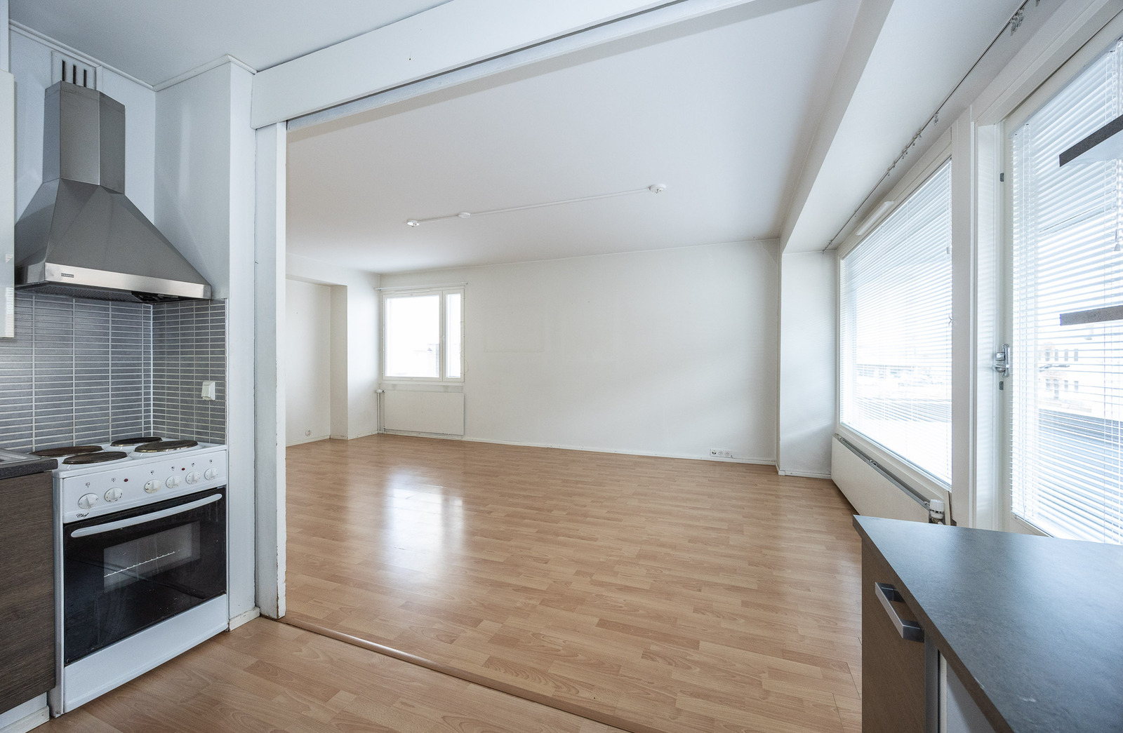 Tämä kulmahuoneisto hurmaa valoisuudellaan. Huoneistossa on tilava eteinen, jossa kaapistot ja vaatehuone, yhdistetty keittiö- olohuone ja remontoitu kylpyhuone. Parvekkeelta näkymät Ristirannankadulle ja Halpa-Hallille.