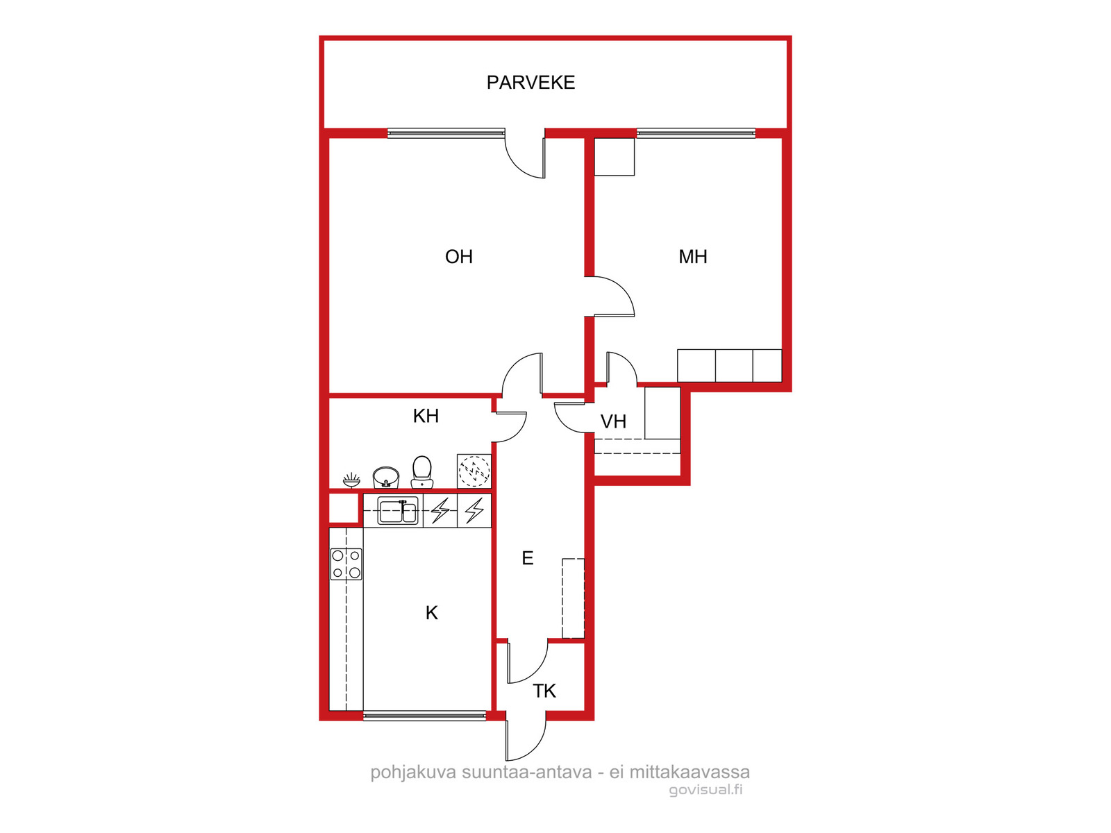 | Huoneistoselitelmä | 2h+k+kph+vh+parveke |