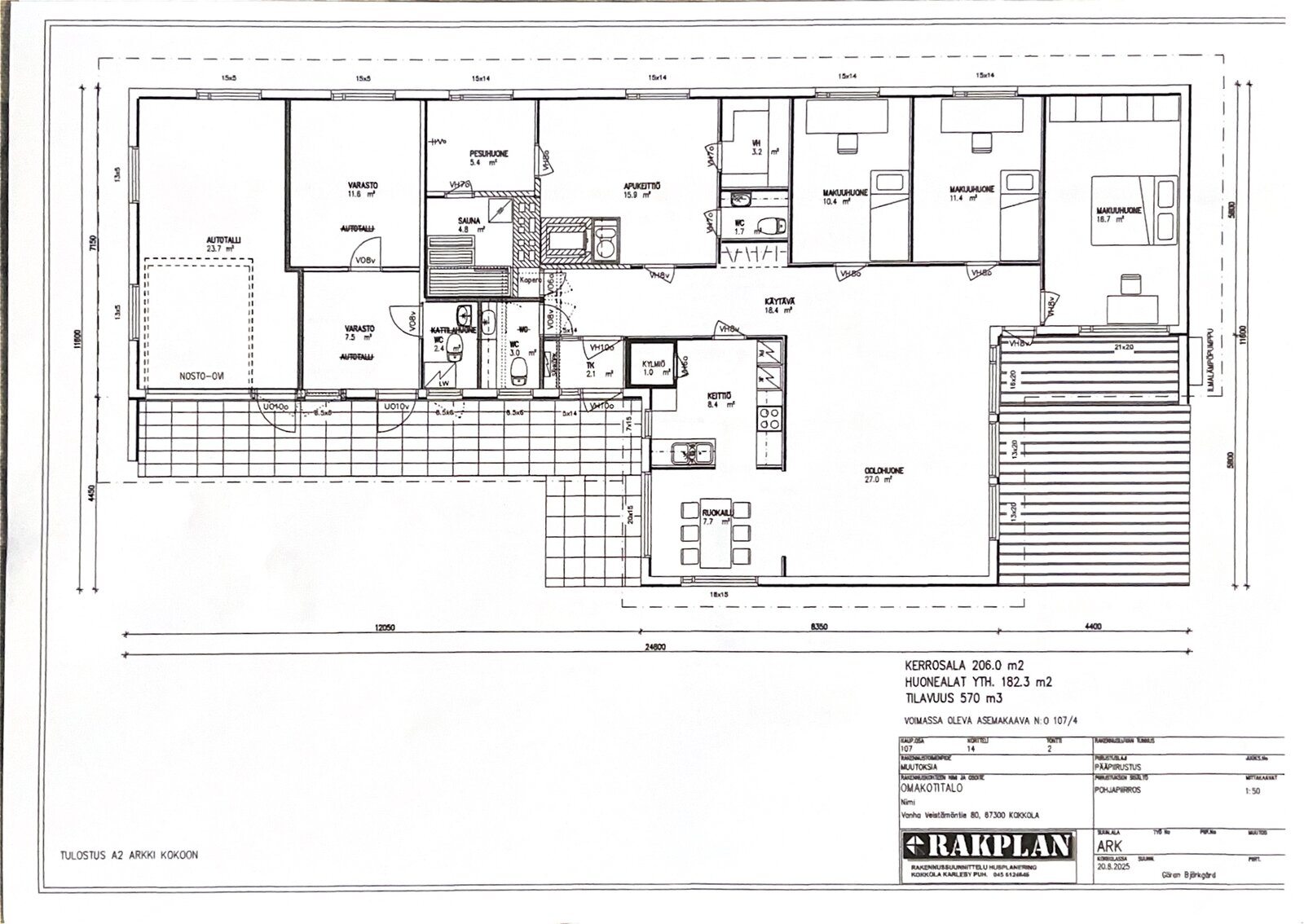 Huoneistoselitelmä | 3mh+k+oh+apukeittiö+kph+s+2 wc+autotalli |