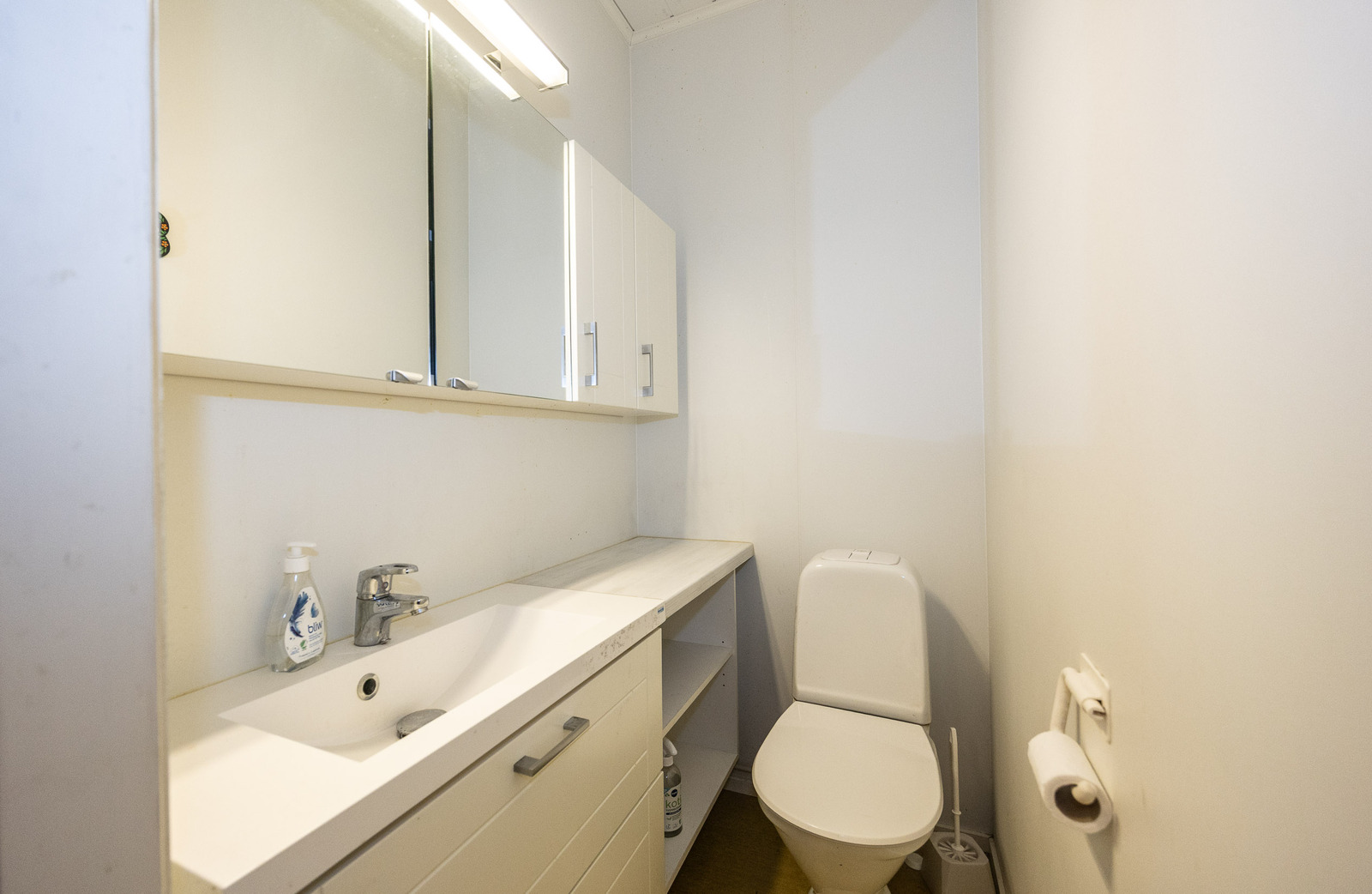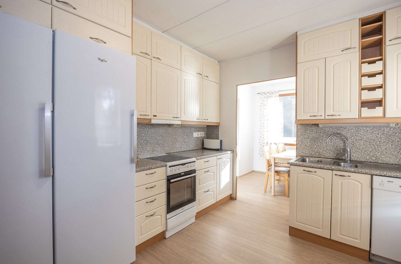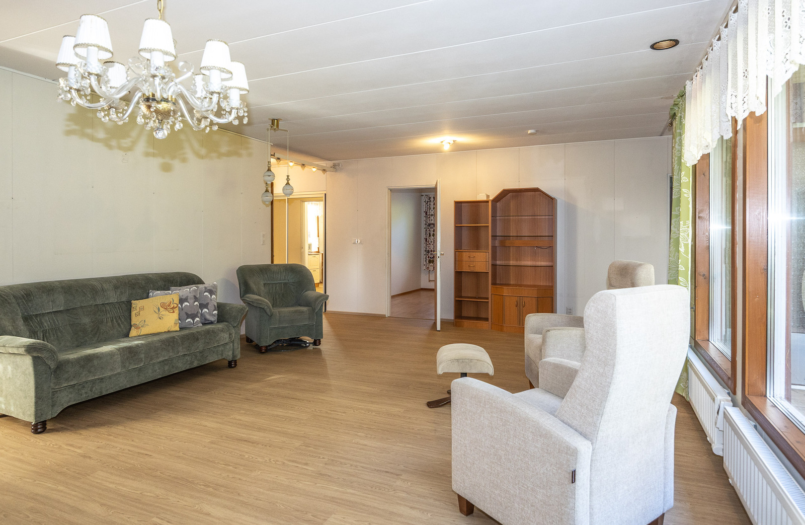 Asunnon pohjaratkaisu on myös sopiva esim. kotitoimistotarpeisiin/kampaamo/hieroja, sillä muista asuintiloista erillään on lämmintila, jossa oma wc sekä sisäänkäynti. Lisäksi autotalli ja hyvin säilytystilaa.