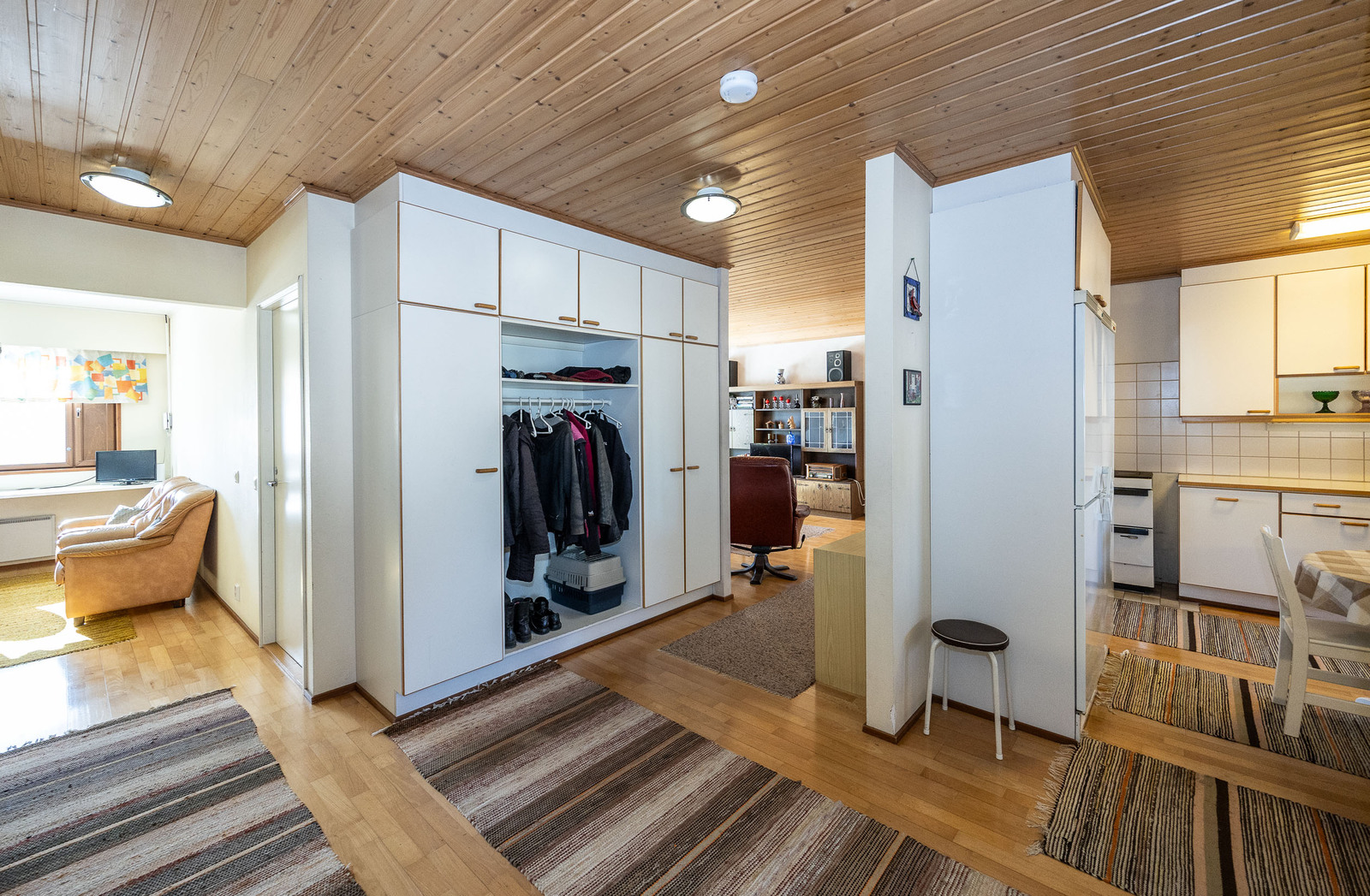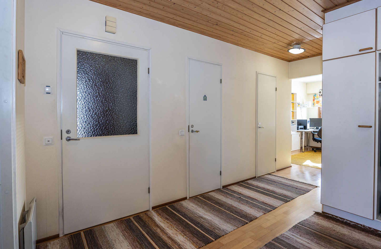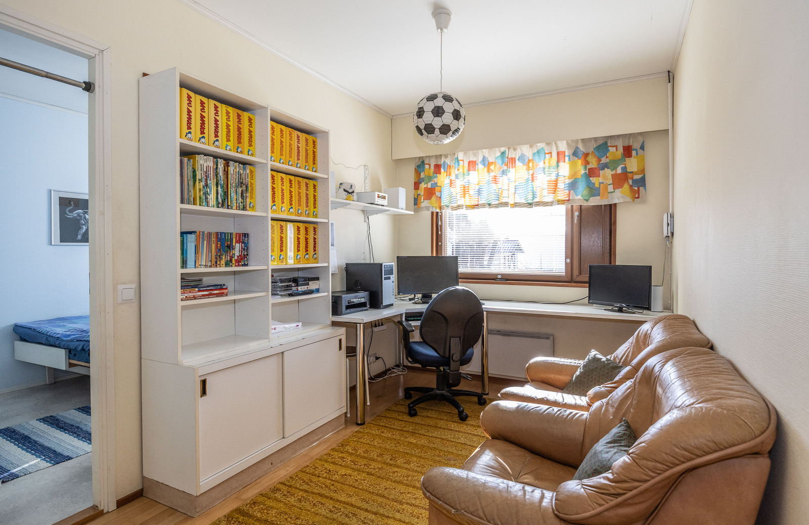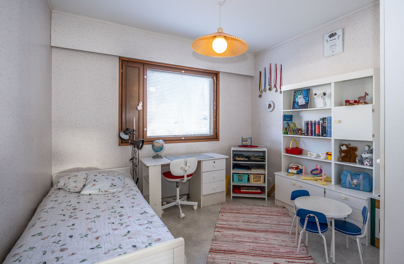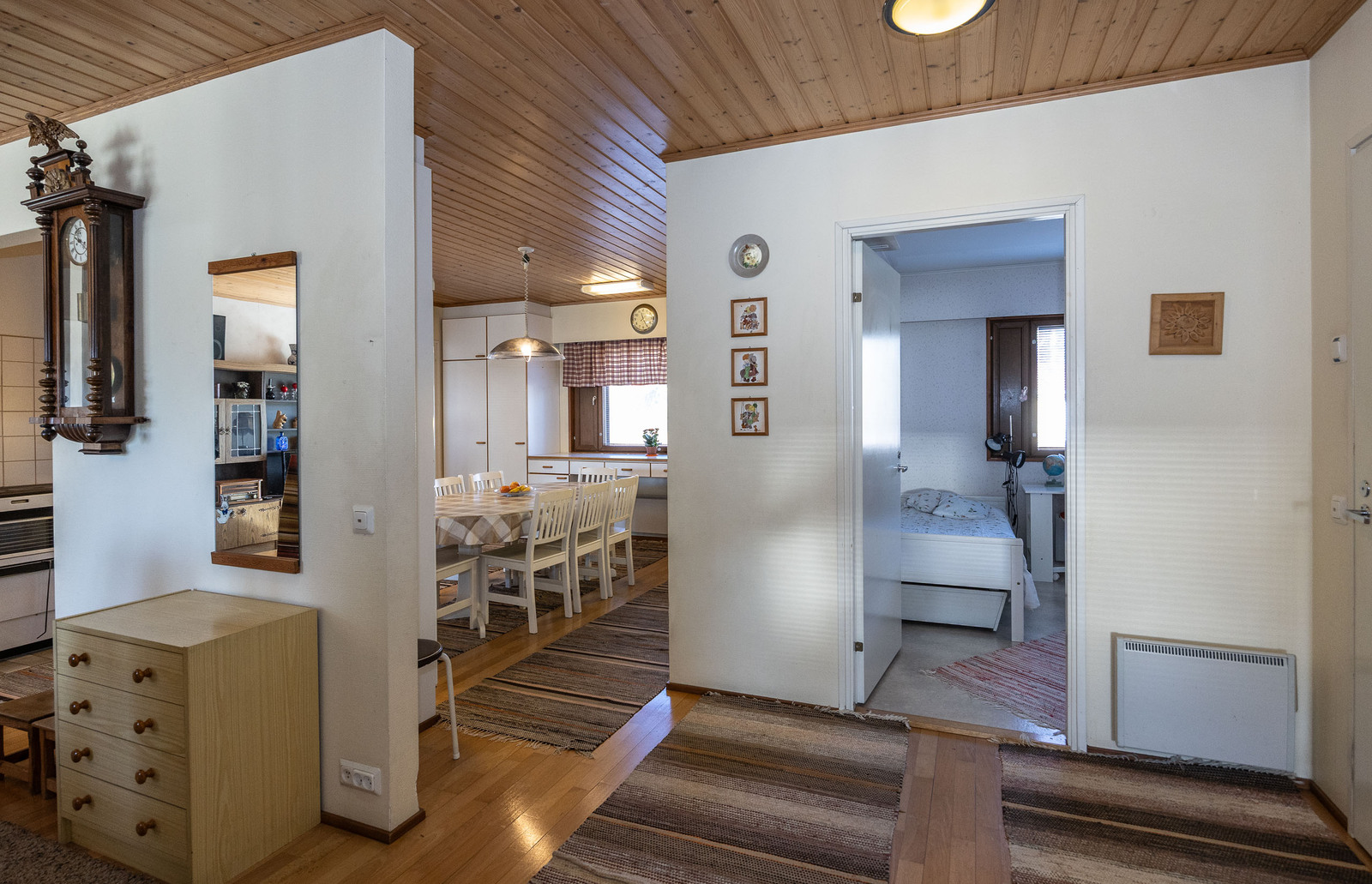 Vuonna 1991 valmistuneessa yksitasoisessa omakotitalossa on neljä makuuhuonetta, jotka mahdollistavat oman rauhan jokaiselle, ja kaksi erillistä WC:tä sujuvoittavat aamukiireitä. Säilytystilaa on hyvin lapsiperheen tarpeisiin. Olohuoneessa varaava takka ja tilavassa keittiössä puuhella.