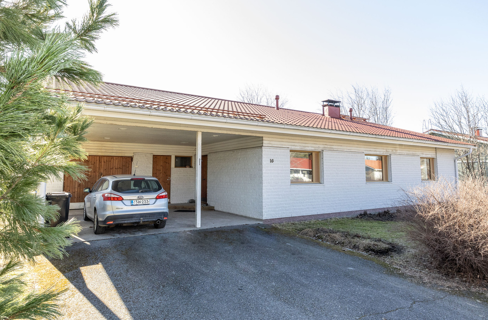 Auton saa kätevästi siääntulon yhteydessä olevaan katokseen tai lämpimään autotalliin.