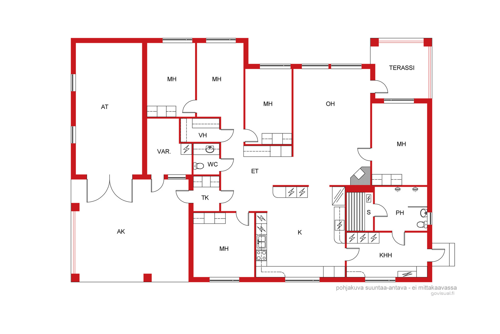 | Huoneistoselitelmä | 4mh+oh+k+khh+kph+s+2wc+vh+varasto+autotalli+autokatos |