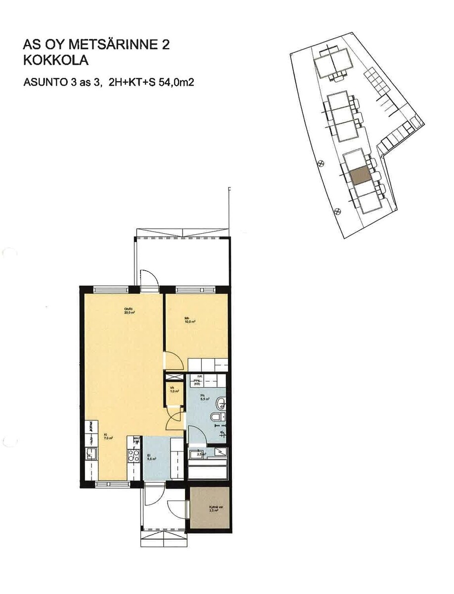 | Huoneistoselitelmä | 2h+kk+kph+s+vh+terassi+var. |